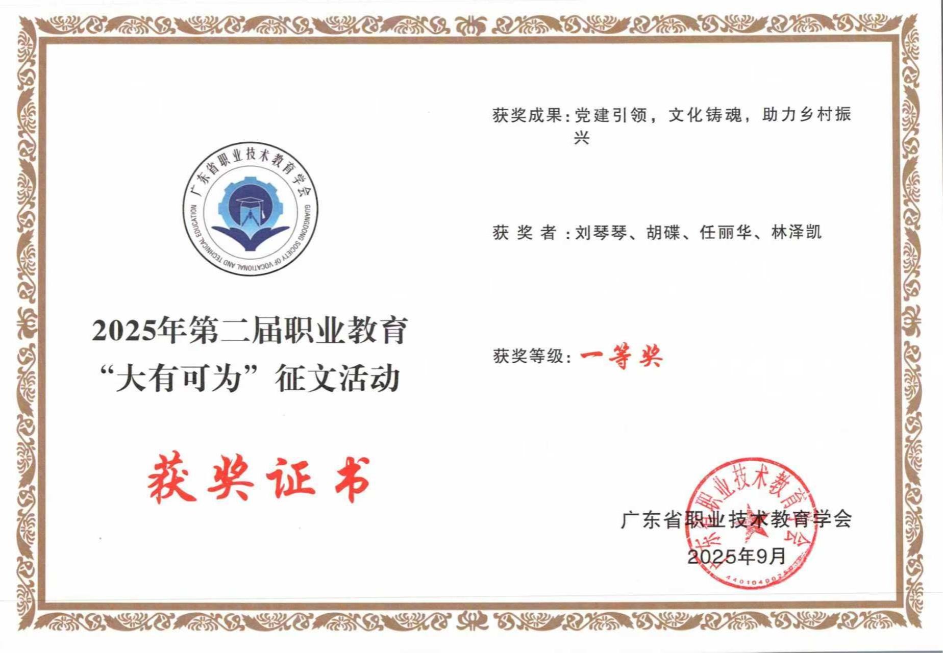 近日,2025年第二屆職業(yè)教育“大有可為”征文活動獲獎名單正式揭曉。經專家嚴格評審,我校人文學院教師團隊撰寫的《黨建引領,文化鑄...